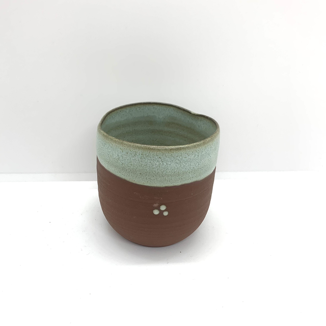 Tasse en grès crée au tour, émaillée à l’intérieur + bordure en céladon.