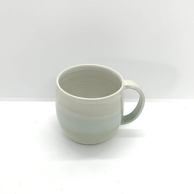 Tasse artisanale en grès avec anse créée au tour aux couleurs très douces.